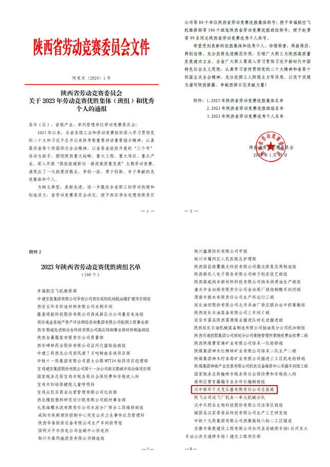 2023年,汉中新环干式变压器有限责任公司坚持以习近平新时代中国特色社会主义为指导,认真贯彻落实集团公司和汉变公司的决策部署,聚焦生产经营中心任务,将劳动竞赛与生产相结合,激发员工的劳动热情、促进团队的凝聚力,在实践中取得了显著的成效,为公司的发展注入新的动力。